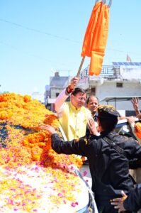 मुख्यमंत्री का रोड शो में जनता व जनप्रतिनिधियों ने पुष्पवर्षा कर भव्य स्वागत किया।