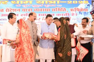 मुख्यमंत्री श्री पुष्कर सिंह धामी ने शनिवार को ऋषिकेश में संयुक्त रोटेशन यात्रा व्यवस्था समिति द्वारा आयोजित चारधाम यात्रा-2026 के शुभारम्भ कार्यक्रम में प्रतिभाग किया। इस दौरान मुख्यमंत्री ने चार धाम जाने वाली बसों को हरी झंडी दिखाकर रवाना किया। उन्होंने श्रद्धालुओं के लिए स्थापित निशुल्क स्वास्थ्य शिविर का भी निरीक्षण किया।